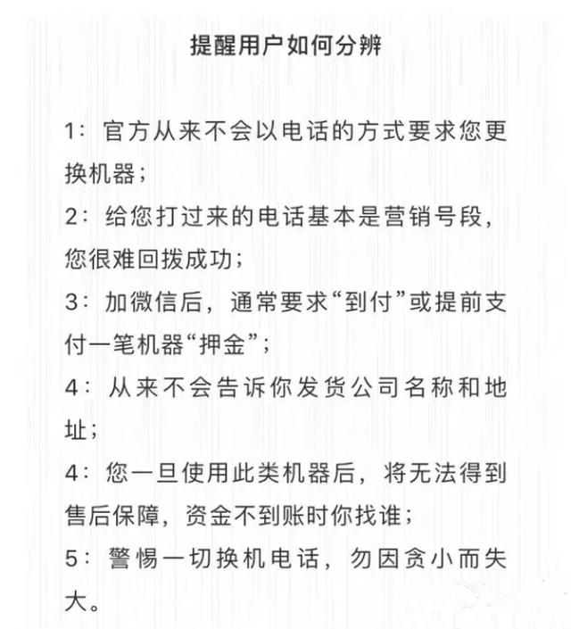 如果你相信了,并且辦理了機器,就很可能跳進(jìn)了騙子精心安排的陷阱中,有可能會遭遇資金安全的風(fēng)險。